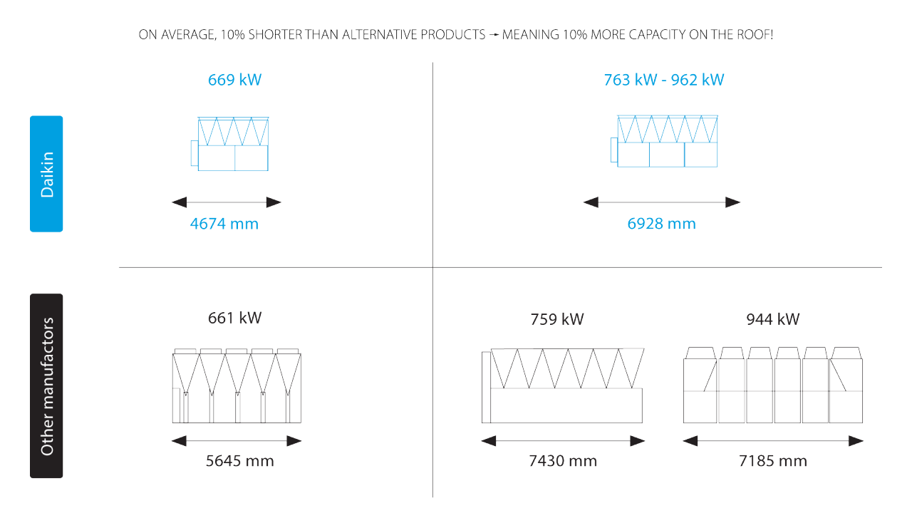 Ces systèmes n’occupent pas plus de place qu’un groupe d’eau glacée standard sans fonction refroidissement naturel.