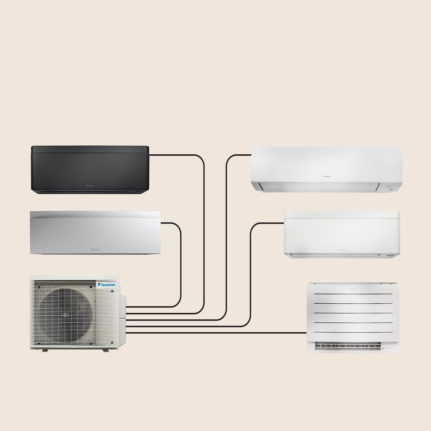 Maak je keuze uit ons uitgebreide gamma lucht-luchtwarmtepompen voor een aansluiting op je buitenunit