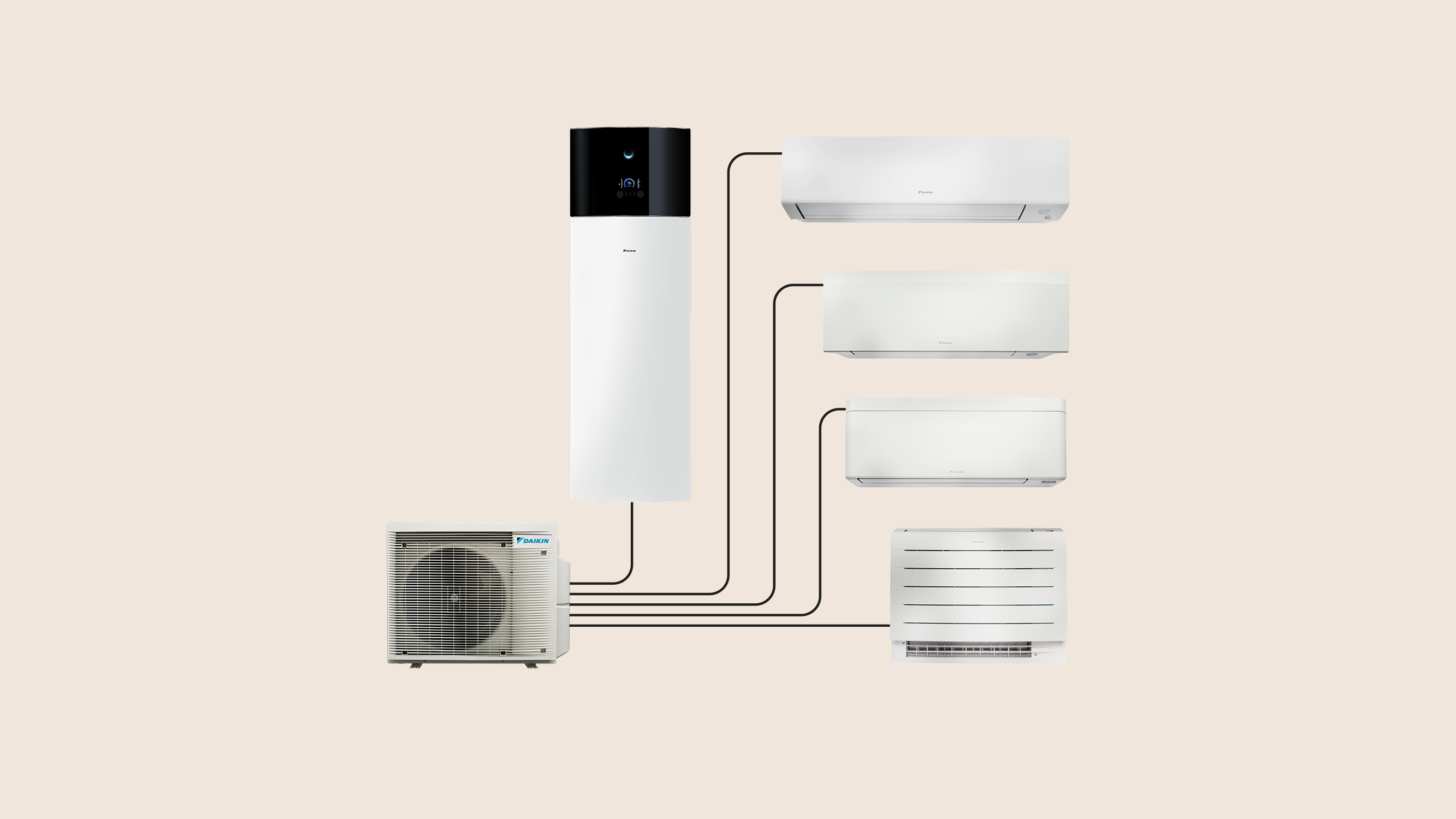 Verwarmen en koelen van meerdere ruimtes door een buitenunit aan te sluiten op maximaal vijf binnenunits