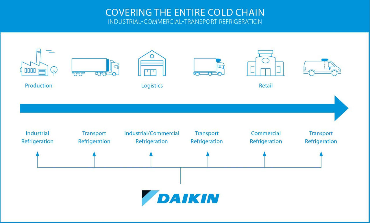 Daikin blijft de toekomst van de koelketen hervormen door flexibele en complete oplossingen te bieden voor elke toepassing - productie, opslag, kleinhandel en transport.